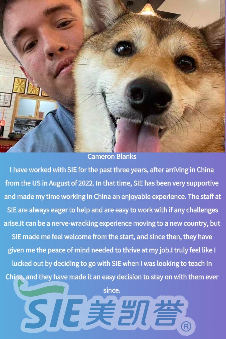 Throughout my time teaching in China, SIE has remained supportive, professional, and responsive whenever I needed assistance or advice. Thanks to their help, I was able to focus on my teaching and enjoy living and working in China with confidence and peace of mind.